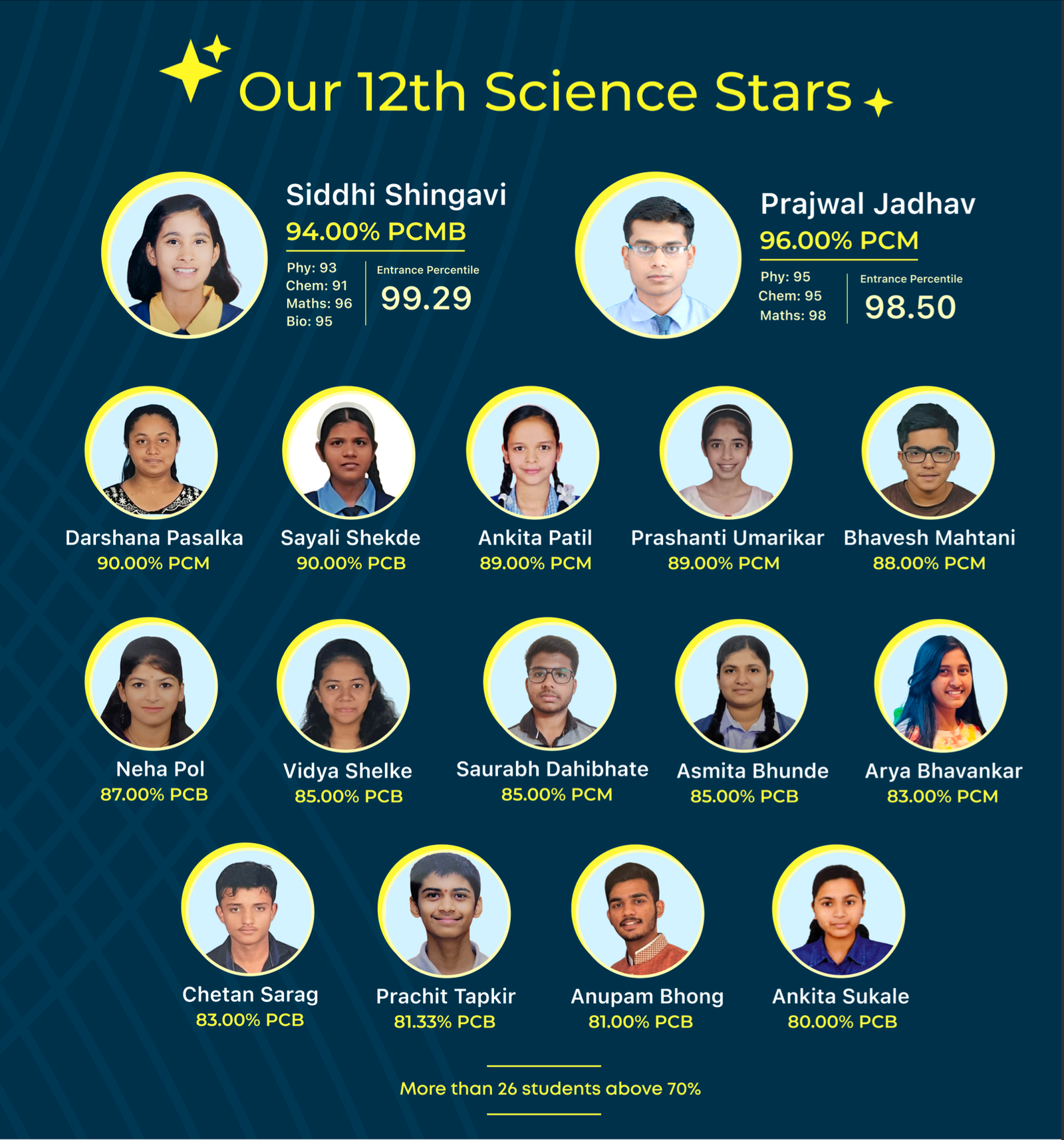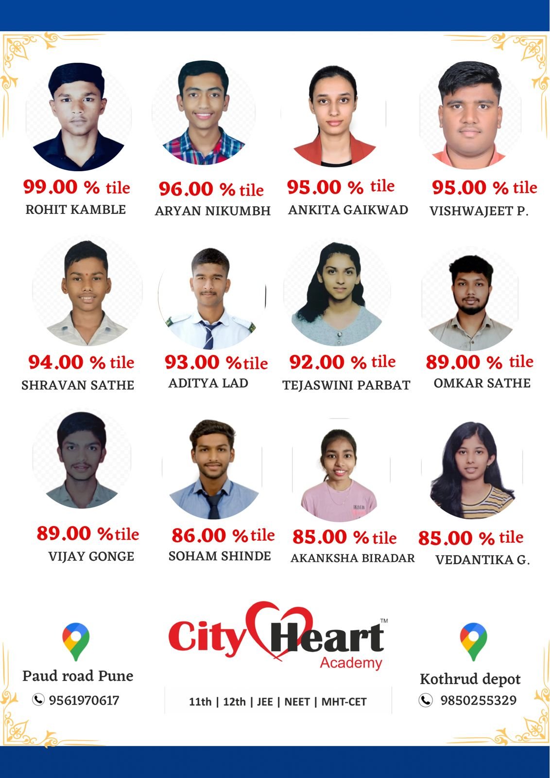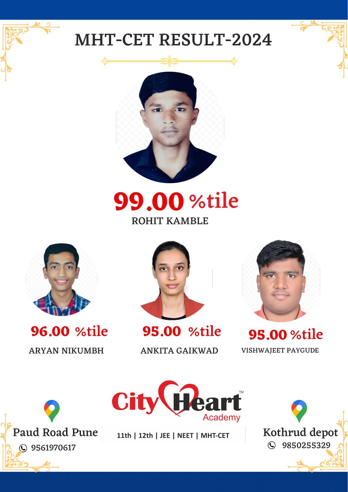 आजपर्यंत सिटी हार्टच्या माध्यमातून शेकडो विद्यार्थ्यांची सर्वोत्तम शासकिय अभियांत्रिकी आणि मेडिकल कॅालेजेस साठी निवड झाली आहे.